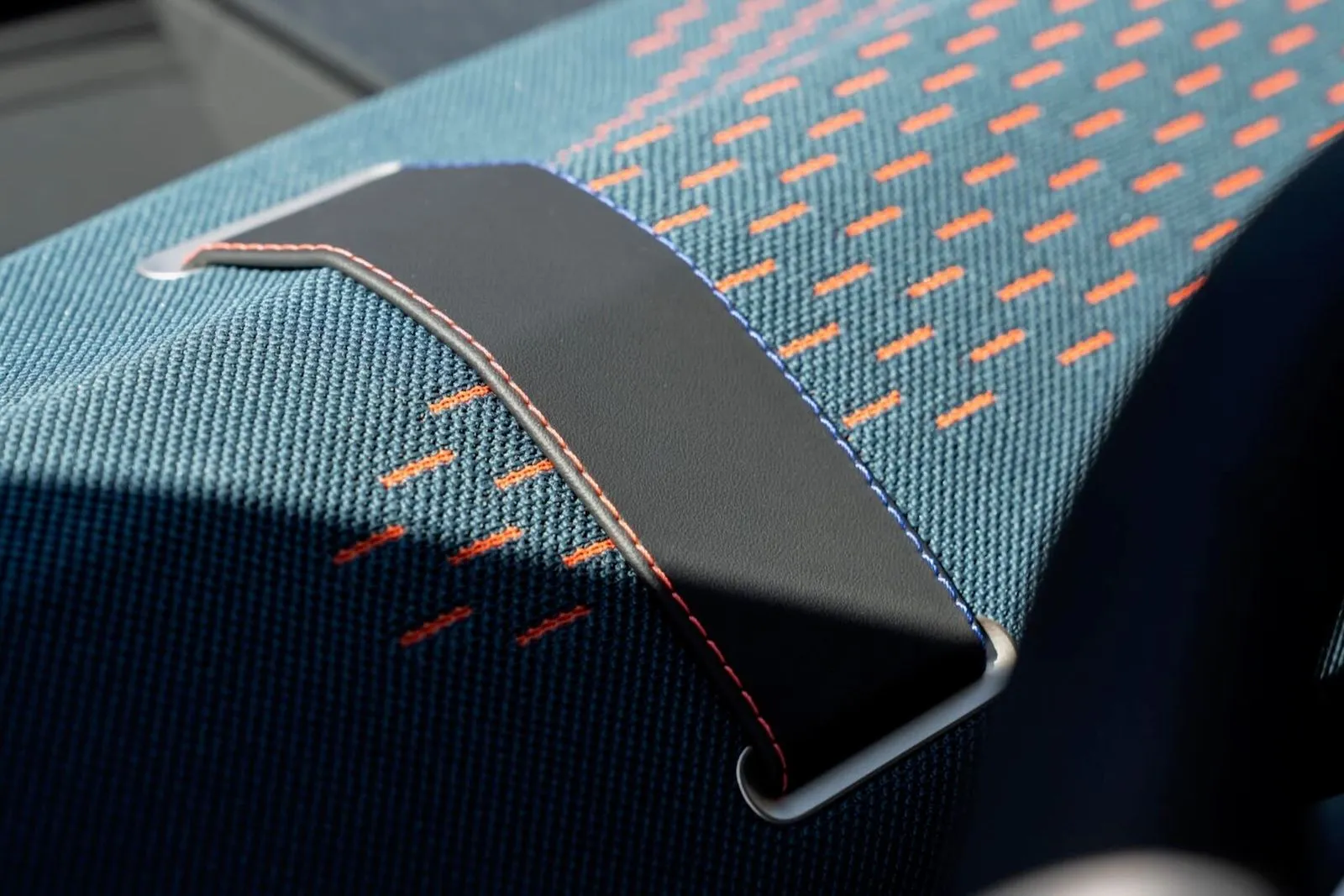 Έτσι επιτυγχάνεται μία ισορροπημένη διχρωμία με εντυπωσιακό βάθος, όπου το χρώμα του κάτω υφασμάτινου στρώματος διαφαίνεται διακριτικά μέσα από το άνω στρώμα. Η συγκεκριμένη δομή, εμπνευσμένη από τον σχεδιασμό αθλητικών παπουτσιών και μελετημένη με προσοχή, δημιουργεί ένα εντυπωσιακό οπτικό αποτέλεσμα και προσφέρει μία μοναδική, υψηλής ποιότητας εμφάνιση στο εσωτερικό. Τα εξαρτήματα είναι επίσης ανθεκτικά στη φθορά, δομικά ενισχυμένα και πλήρως απαλλαγμένα από δέρμα.