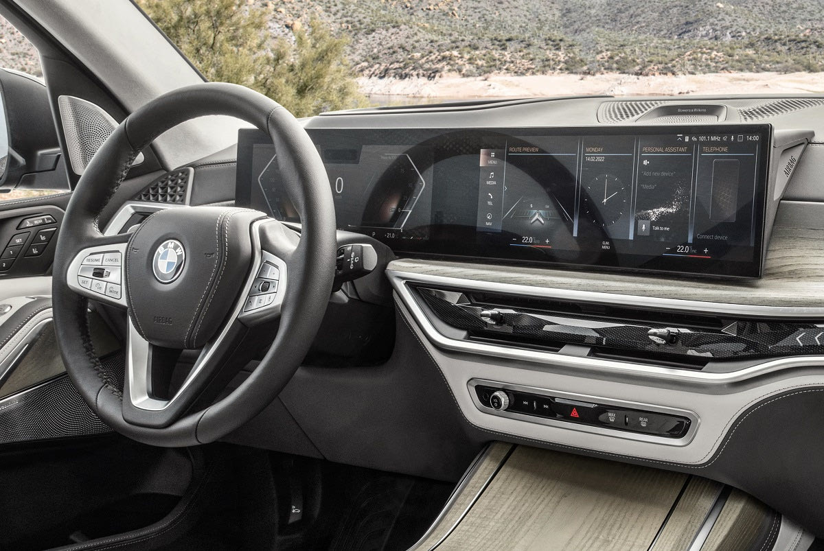 Ο νέας σχεδίασης πίνακας οργάνων με τους λεπτούς αεραγωγούς και μία φωτεινή μπάρα εσωτερικού κρυφού φωτισμού, περιλαμβάνονται στο στάνταρ εξοπλισμό. Μαζί με την κυρτή οθόνη BMW Curved Display εισάγουν ένα σύγχρονο, ψηφιακό στυλ στο cockpit της Χ7. Νέα σχεδίαση έχει επίσης ο επιλογέας ταχυτήτων.