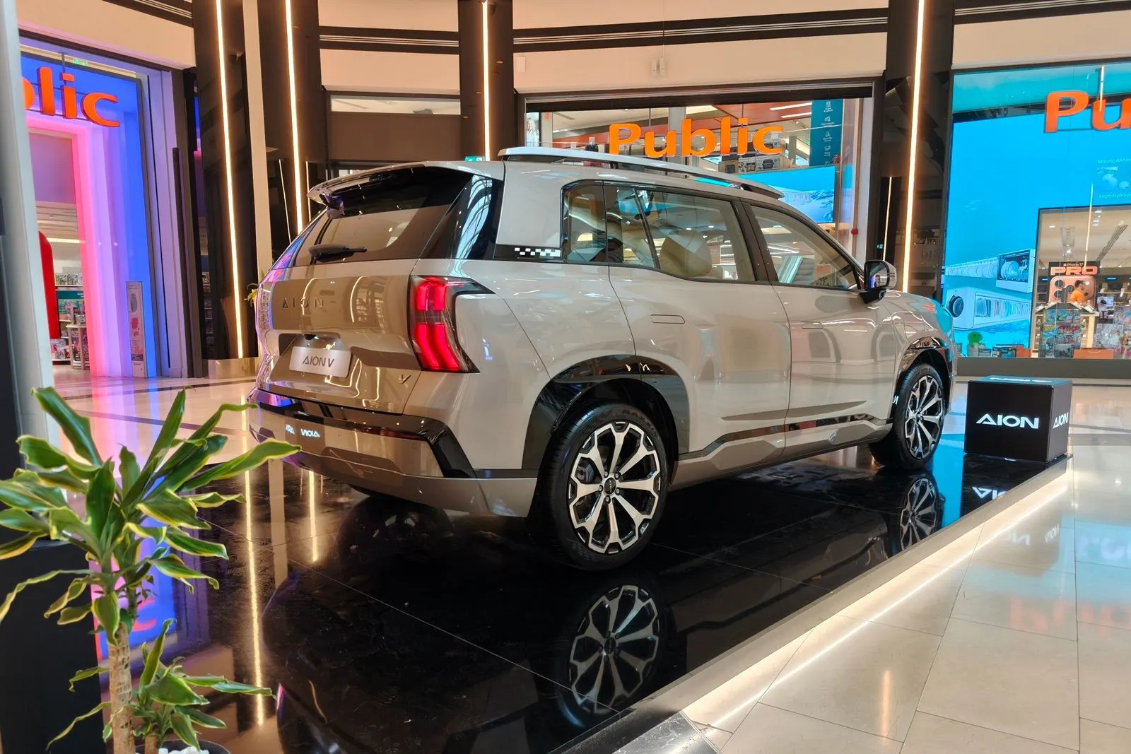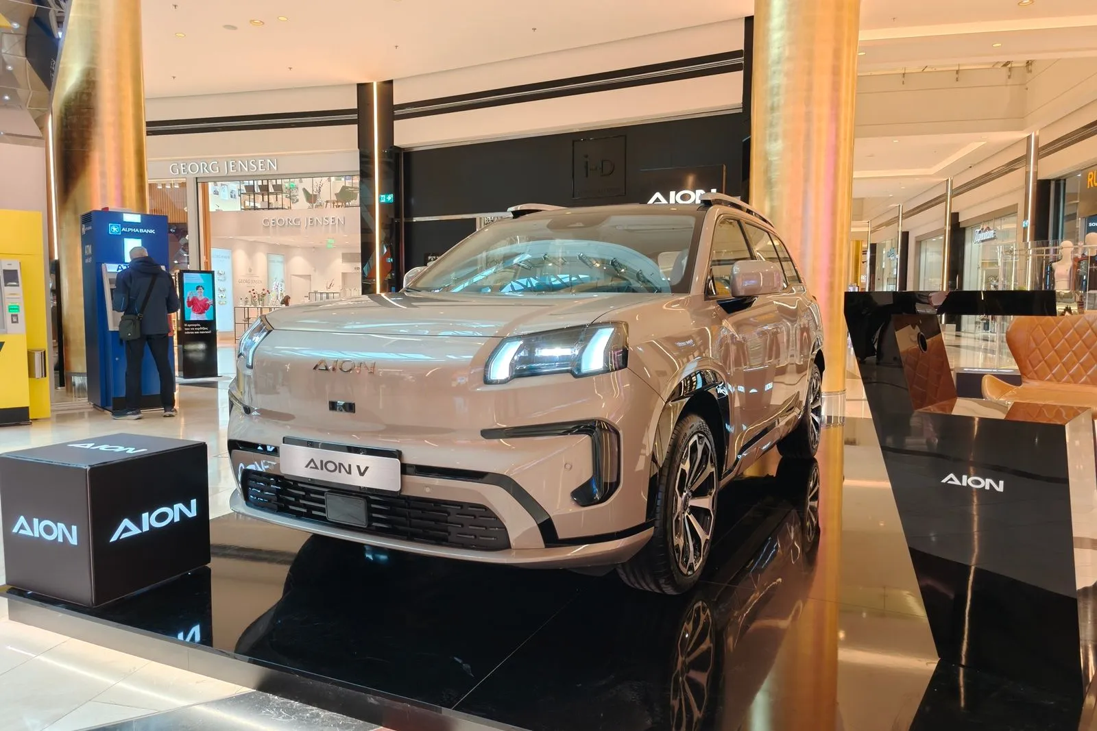 Μέχρι τις 19 Απριλίου 2026, οι επισκέπτες του Golden Hall έχουν τη δυνατότητα να γνωρίσουν από κοντά το Aion V σε ειδικά διαμορφωμένο χώρο προβολής, πολύ κοντά στο σημείο του καταστήματος Public, στην κεντρική είσοδο του εμπορικού κέντρου. Πρόκειται για ένα ανοιχτό, ευρύχωρο setup, σχεδιασμένο ώστε να επιτρέπει την άμεση οπτική και φυσική επαφή με το όχημα, ενισχύοντας την αίσθηση προσβασιμότητας και διαφάνειας που χαρακτηρίζει τη φιλοσοφία της μάρκας.