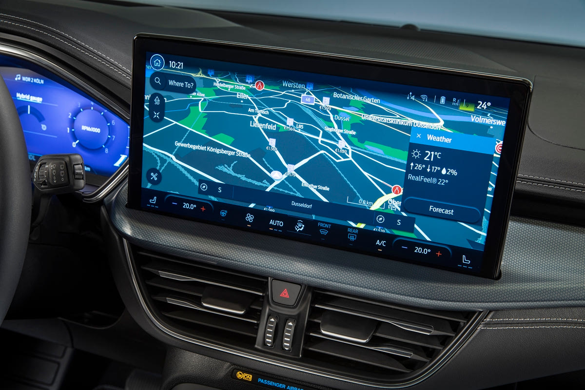 Με την εξέλιξη αυτή, δημιουργείται μια πιο απέριττη και μινιμαλιστική κεντρική κονσόλα. Το σύστημα προσφέρει επίσης ασύρματη συμβατότητα Apple CarPlay και Android Auto, επιτρέποντας την άριστη ενσωμάτωση μεταξύ των λειτουργιών του smartphone και του SYNC 4. Ταυτόχρονα, χάρη στο προηγμένο σύστημα αναγνώρισης φωνής, οι επιβάτες του νέου Focus μπορούν να χρησιμοποιούν φυσικό λόγο σε 15 ευρωπαϊκές γλώσσες.