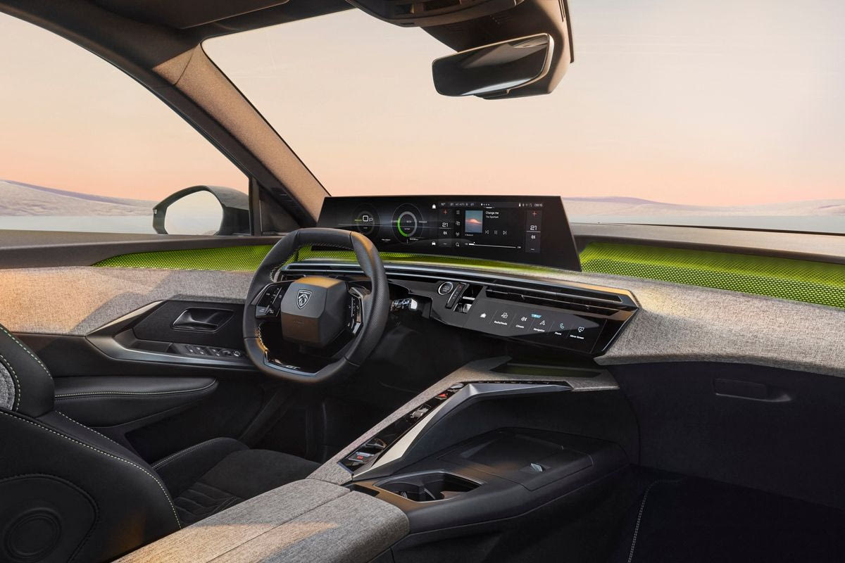 Στο εσωτερικό, η νέα λογική αισθητικής φόρμας και λειτουργικότητας δίνει έναν αέρα πιο προηγμένο στο σύνολο, με το νέο i-Cockpit να κυριαρχεί στο μάτι, μια και η οθόνη υψηλής ευκρίνειας που βλέπουμε στη συγκεκριμένη έκδοση, έχει διαγώνιο 21,0 ίντσες. Το τιμόνι έχει νέα σχεδίαση που συμβάλλει και αυτή με τη σειρά της στη διαμόρφωση της απόλυτα σύγχρονης εικόνας του εσωτερικού.