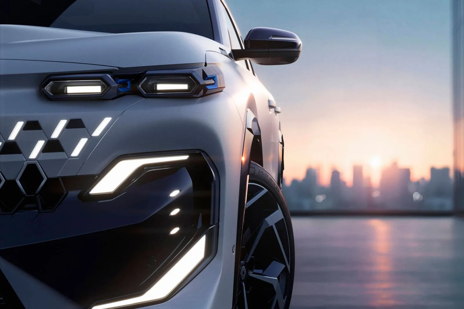 Ιδιαίτερη έμφαση έχει δοθεί στη σχεδίαση της μάσκας, με τρισδιάστατη φωτιζόμενη δομή εμπνευσμένη από το λογότυπο της Renault. Οι LED προβολείς ενσωματώνονται αρμονικά στο αμάξωμα, ενώ η φωτεινή υπογραφή ημέρας σχηματίζει γωνία 28°, αναφορά στη γεωμετρία του σήματος της μάρκας.