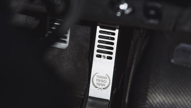 Το εσωτερικό περιλαμβάνει λεπτομέρειες που ήθελε ο ιδιοκτήτης της, όπως επένδυση σε μαύρο Alcantara, ραφή με διαμάντια στα καθίσματα και λογότυπο Senna ‘S κεντημένο σε κάθε προσκέφαλο.