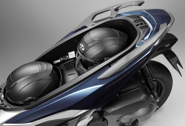 Επίσης, ο εντελώς νέος σωληνωτός σκελετός κάνει το Forza 300 ελαφρύτερο κατά 12 κιλά, έχει μικρότερο μεταξόνιο και πιο γρήγορη γεωμετρία, πολύ πιο συμπαγείς διαστάσεις και ψηλότερη σέλα, τροχούς από χυτό αλουμίνιο, 14 ιντσών ο πίσω.