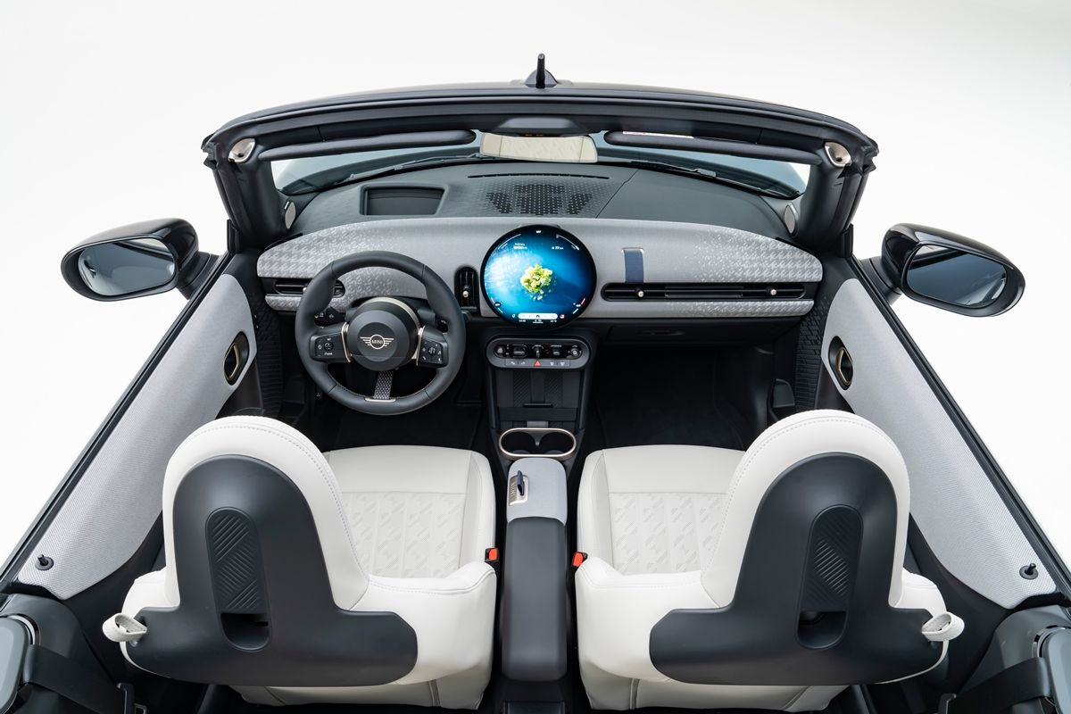 Ο σχεδιασμός του εσωτερικού του νέου Mini Cooper Cabrio εστιάζει στις μινιμαλιστικές λεπτομέρειες και τις υφασμάτινες επιφάνειες. Αυτό αποτελεί μέρος της νέας σχεδιαστικής γλώσσας «Charismatic Simplicity» που χαρακτηρίζει ολόκληρη την οικογένεια MINI μέσω της υιοθέτησης λιγότερων στοιχείων, έξυπνης σχεδίασης και υψηλής ποιότητας κατασκευής.