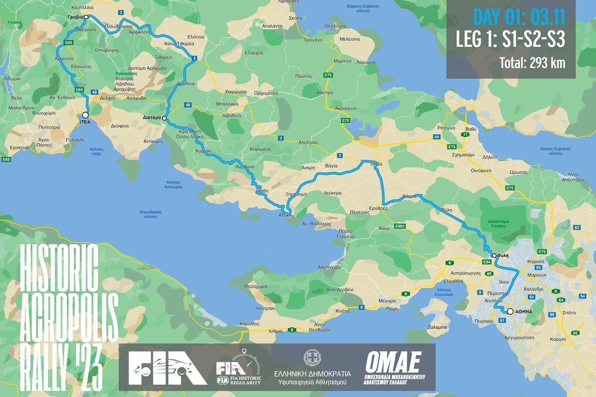 Την πρώτη αυτή ημέρα και στο Α’ σκέλος της, τα πληρώματα θα περάσουν από την Φυλή, την Πύλη και τις Ερυθρές για να φτάσουν στην Θήβα, έχοντας ολοκληρώσει τις δυο πρώτες Ειδικές Δοκιμασίες, οπού θα υπάρξει σύντομη ανασυγκρότηση με προσφορά αναψυκτικών και καφέ. Στη συνέχεια, η διαδρομή θα περάσει από τα Λεύκτρα, την Ελλοπία, τη Θίσβη, την Αγία Άννα, το Κυριάκι και το Δίστομο.