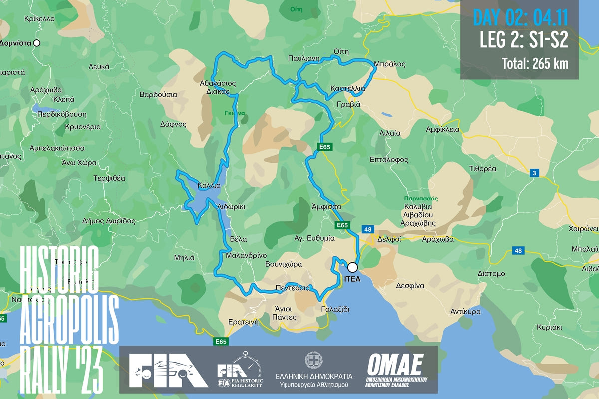 Συνολικά, την πρώτη ημέρα θα καλυφθούν 293 χλμ. με 9 ειδικές. Το Σάββατο 4 Νοεμβρίου, η εκκίνηση θα δοθεί από την Ιτέα στις 09:00 και τα πληρώματα θα καλύψουν 165 χιλιόμετρα μέχρι την ανασυγκρότηση που θα γίνει στην Δομνίστα. Η διαδρομή του Α’ Σκέλους του Σαββάτου θα περάσει από τα Πεντεόρια, το Λιδωρίκι, τον Αθανάσιο Διάκο για να φτάσει στο Καταφύγιο Οίτης.