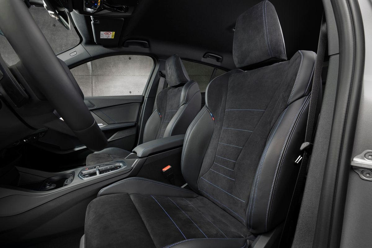 Ο κεντρικός αερόσακος οδηγού-συνοδηγού προσφέρεται τώρα στάνταρ για να ενισχύσει περαιτέρω την προστασία των επιβατών. Αναδιπλώνοντας τις πλάτες των πίσω καθισμάτων, ο αποθηκευτικός χώρος στο χώρο φόρτωσης μπορεί να αυξηθεί από τα 380 στα 1.200 λίτρα (BMW 120, BMW 120d: 300 – 1.135 λίτρα). Οι επιφάνειες και τα στοιχεία διακόσμου υψηλής ποιότητας, ο επανασχεδιασμένος επιλογέας ταχυτήτων και η κυρτή οθόνη BMW Curved Display υπογραμμίζουν την προοδευτική, premium ατμόσφαιρα του εσωτερικού.