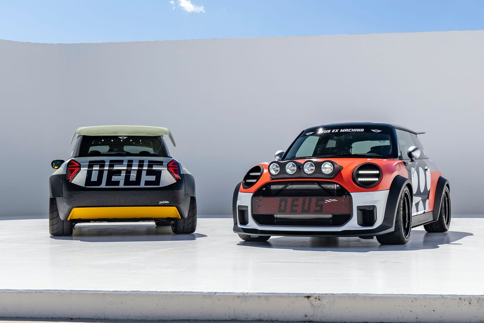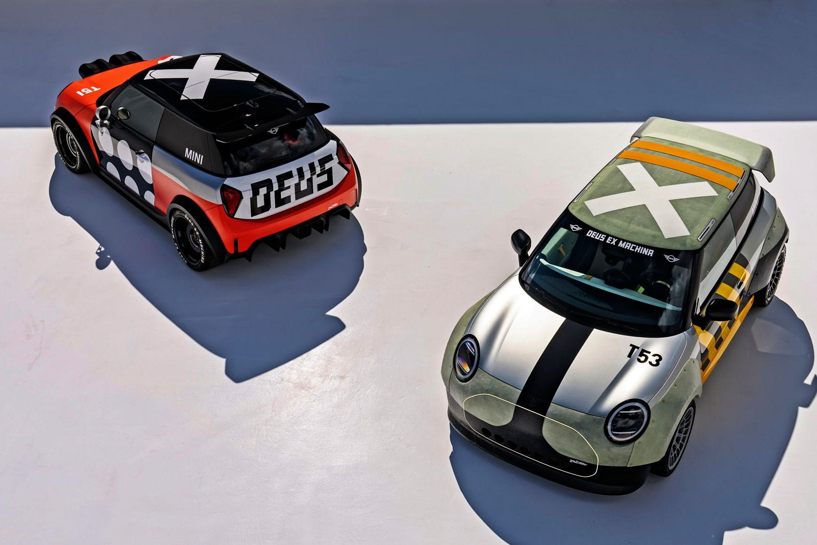 Τιμώντας την πλούσια αγωνιστική κληρονομιά της ΜΙΝΙ, τα δύο αυτοκίνητα εκφράζουν τον κοινό ενθουσιασμό για τον μηχανοκίνητο αθλητισμό και την εξατομίκευση, με το καθένα να διαθέτει διαφορετική σχεδίαση, λειτουργικότητα και δημιουργική καινοτομία. Με βαθύ σεβασμό στην κατασκευαστική δεξιοτεχνία, την κουλτούρα και τις κοινότητες που τα διαμορφώνουν, η συνεργασία της MINI John Cooper Works με τη Deus Ex Machina ζωντανεύει μέσα από δύο εξατομικευμένα one-off αυτοκίνητα.