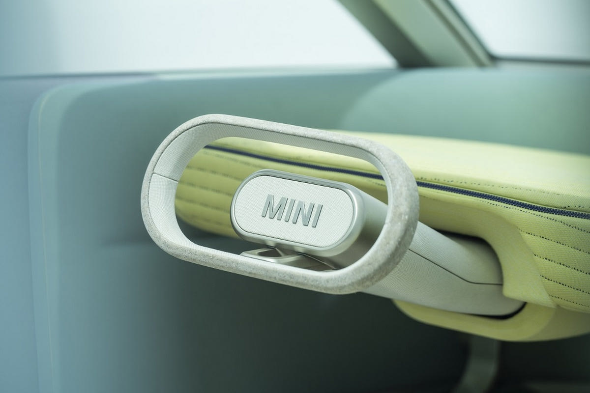 Επίσης, η ομάδα των μηχανικών επικεντρώθηκε στη σταθερή μείωση των εξαρτημάτων και στην αποφυγή της περιττής χρήσης υλικών. Αυτό επιτεύχθηκε, μεταξύ άλλων, με έξυπνη, διπλή λειτουργικότητα του ταμπλό (που μπορεί να μετατρέπεται σε καναπέ) και την πρώτη εμφάνιση μιας στρογγυλής κεντρικής οθόνης OLED – που μεταμορφώνεται σε στιλάτο φωτιστικό στη στιγμή Chill – πάνω από το τραπέζι. Προτεραιότητα αποτελεί επίσης η μεγιστοποίηση του χρόνου χρήσης εξασφαλίζοντας τη δυνατότητα αντικατάστασης των υλικών. Καλύμματα που αντικαθίστανται είναι ένα καλό παράδειγμα για το πώς αυτό μπορεί να επιτευχθεί. Επιπλέον, το εσωτερικό έχει δημιουργηθεί χωρίς τη χρήση χρωμίου ή δέρματος, μία μέθοδος που μπορεί να εφαρμοστεί και στην επόμενη γενιά του μοντέλου MINI.
