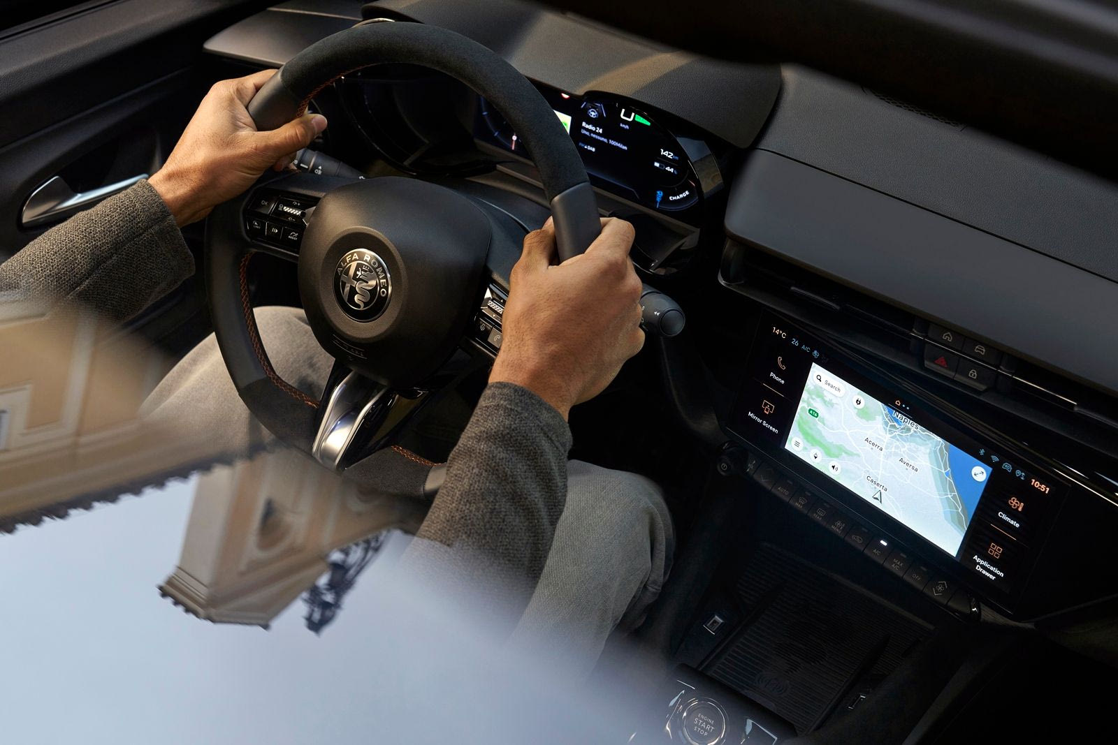 Στο εσωτερικό τη διαφορά κάνουν οι καφέ ραφές στο τιμόνι που είναι ντυμένο με δέρμα και Alcantara και αντίστοιχες ραφές στις επενδύσεις των θυρών, τα εμπρός προσκέφαλα και το υποβραχιόνιο. Τα καθίσματα έχουν επένδυση Alcantara επίσης με γκρι ραφές, όπως άλλωστε και η κεντρική κονσόλα.