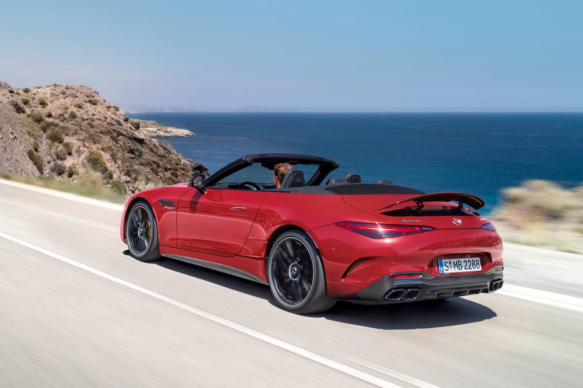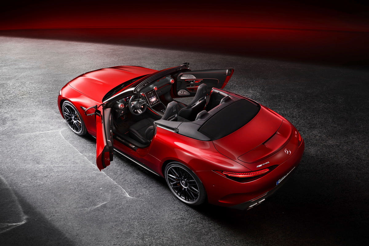 Η ολοκαίνουρια SL είναι γνήσιο “παιδί” της AMG. Εντυπωσιάζει με το πανέμορφο roadster αμάξωμά της, κάτω από το οποίο κρύβεται ένα εξαιρετικά στιβαρό πλαίσιο. Σε αντίθεση με τις προηγούμενες γενιές της, αντί για σκληρή αναδιπλούμενη οροφή διαθέτει μια υφασμάτινη οροφή τριπλής επίστρωσης που ζυγίζει 21 κιλά λιγότερο, ενσωματώνει θερμαινόμενο τζάμι και μπορεί να αναδιπλωθεί σε 15’’ μέσω διακόπτη στην κονσόλα ή μέσω εντολής στο infotainment.