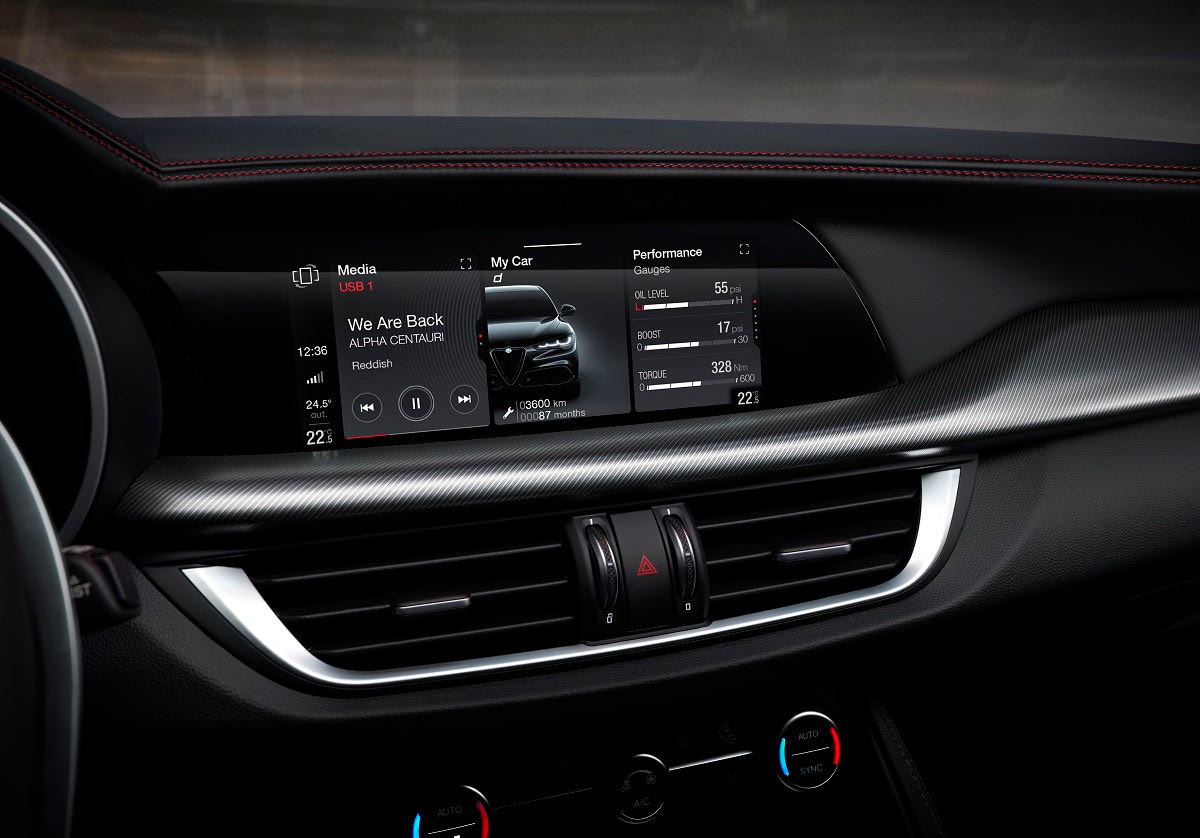 Οι νέες Giulia και Stelvio εφοδιάζονται με μια σειρά νέων τεχνολογιών, οι οποίες εξασφαλίζουν υψηλό επίπεδο άνεσης και συνδεσιμότητας και παράλληλα ενισχύουν την οδηγική απόλαυση που χαρακτηρίζει μια Alfa Romeo. Εντελώς νέος είναι ο ψηφιακός πίνακας οργάνων που διατηρεί μεν την παραδοσιακή σχεδίαση “cannocchialle” με τα δύο στρογγυλά όργανα, όμως πλέον αποτελείται από μια υψηλής ευκρίνειας και παραμετροποιήσιμη οθόνη TFT 12,3 ιντσών.