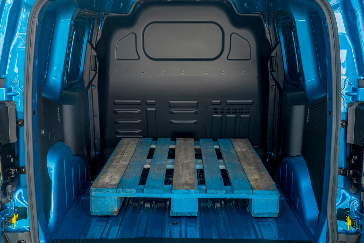 Η εντελώς νέα αρχιτεκτονική ωφέλησε την ικανότητα μεταφοράς φορτίου και την πρακτικότητα του E-Transit Courier. Όλες οι διαστάσεις του χώρου φόρτωσης είναι μεγαλύτερες συγκρινόμενες με εκείνες του απερχόμενου μοντέλου. Πλέον μπορεί να μεταφέρει δύο ευρωπαλέτες, χάρη στη νέα σχεδίαση της πίσω ανάρτησης που αυξάνει το πλάτος μεταξύ των θόλων των τροχών.