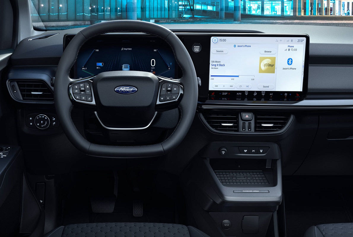 Στο εσωτερικό του Transit Courier υπάρχουν όλες οι ανέσεις και ευκολίες που συναντά κανείς σε ένα σύγχρονο επιβατικό αυτοκίνητο. Υπάρχει ψηφιακός πίνακας οργάνων 12’’ και κεντρική οθόνη αφής 12’’ για το σύστημα πολυμέσων SYNC 4 της Ford με στάνταρ ασύρματη σύνδεση κινητού μέσω Android Auto και Apple CarPlay.