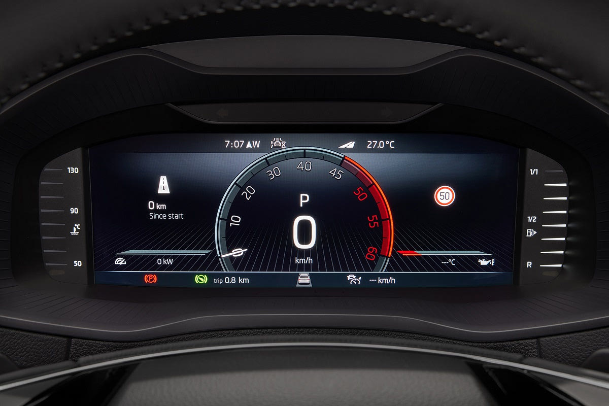 Τα επανασχεδιασμένα φώτα ημέρας, τα οποία τώρα χωρίζονται στα δύο, τονίζουν ακόμη περισσότερο τη δυναμική εμφάνιση του αυτοκινήτου. Η Skoda προσφέρει μάλιστα για πρώτη φορά τεχνολογία full-LED Matrix για τους προβολείς. Εδώ, δύο μονάδες LED είναι διατεταγμένες η μία πάνω από την άλλη, για τη μεσαία και μεγάλη σκάλα και δημιουργούν ένα ξεχωριστό σύμπλεγμα τεσσάρων φώτων, με χαρακτηριστική φωτιστική υπογραφή στο σκοτάδι. Τα πίσω φώτα είναι στάνταρ full-LED ενώ σε κάποιες εκδόσεις διαθέτουν δυναμικά φλας.