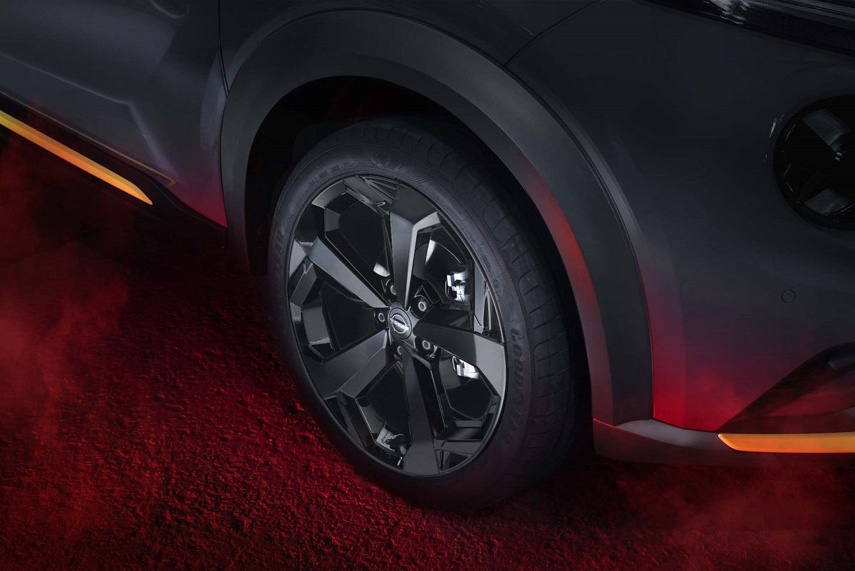 Παράλληλα, η ειδική έκδοση αποκαλύπτει κι ένα νέο εξωτερικό χρώμα, το Ceramic Grey. Οι μαύρες ζάντες 19″ του JUKE Kiiro προέρχονται από την κορυφαία έκδοση Tekna.