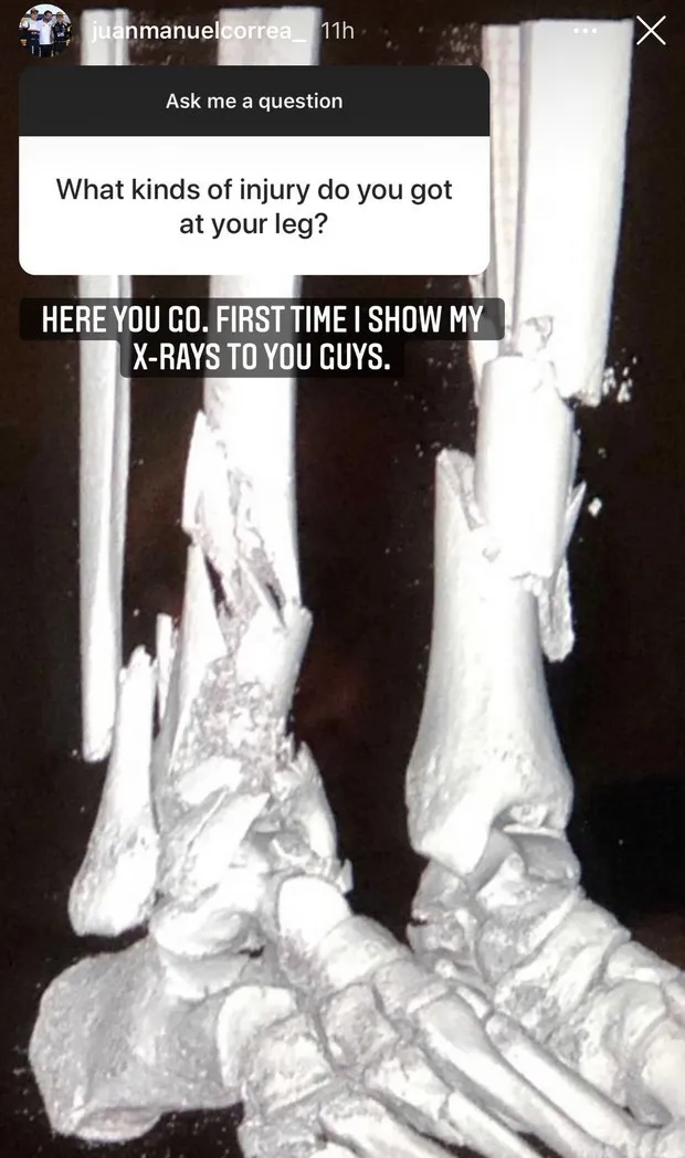 Ένα χρόνο και 20 επεμβάσεις μετά από το δυστύχημα στο Σπα, ο 21χρονος οδηγός της Formula 2, Χουάν Μανουέλ Κορέα, δημοσίευσε την πρώτη ακτινογραφία μετά από τη σύγκρουση. Προσοχή: Η εικόνα σοκάρει (PHOTO).