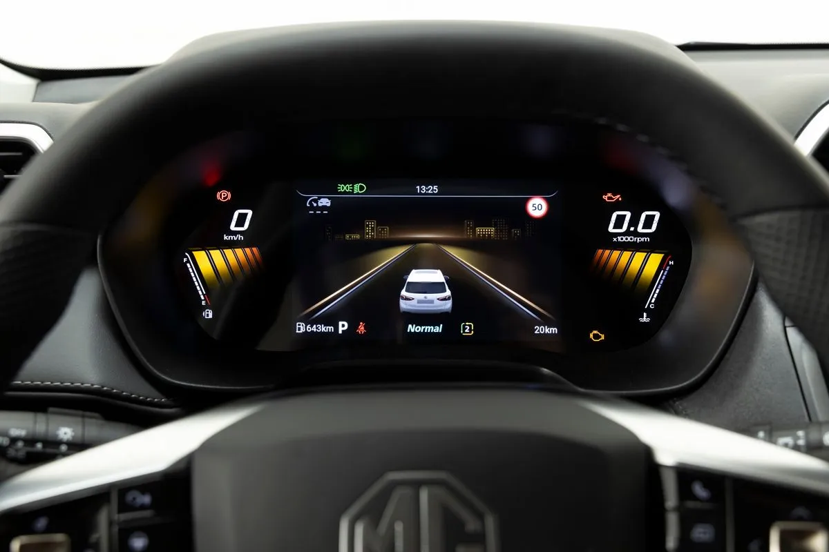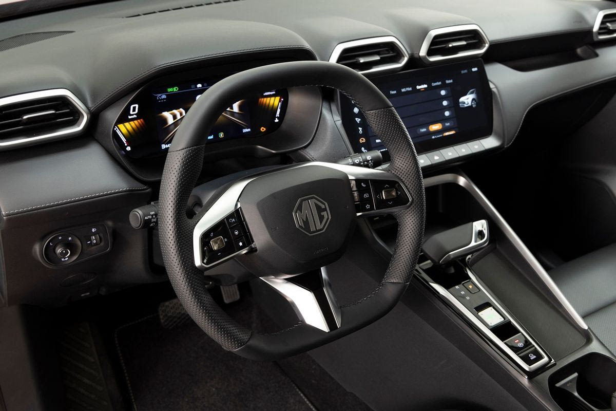 Με γρήγορο λογισμικό και όλα όσα έχουμε συνηθίσει να βλέπουμε στο interface ενός σύγχρονου SUV μοντέλου από κατασκευαστών πολυτελών μοντέλων, η εικόνα του εσωτερικού είναι αντάξια μιας premium πρότασης. Το τιμόνι με τις αμβλείες γωνίες (παραπέμπει σε εκείνο του αμιγώς ηλεκτρικού MG4) και ο “αεροπορικού τύπου” επιλογέας του κιβωτίου ταχυτήτων με τις τρεις σχέσεις, σε συνδυασμό με το τετράγωνο κουμπί για την ενεργοποίηση του κινητήρα στην κεντρική κονσόλα, δίνουν την αίσθηση της ακριβότερης κατασκευής.
