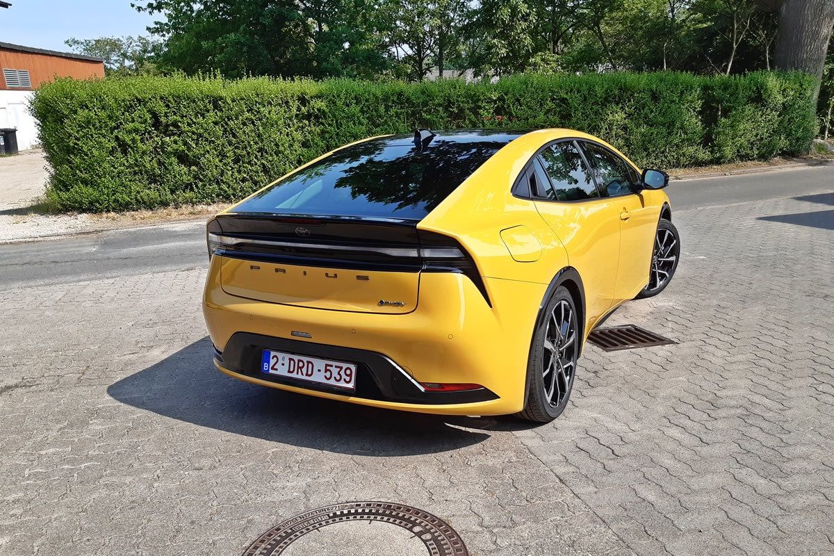 Η μεγάλη κλίση του παρμπρίζ και η “χυτή” αισθητική προς τα πίσω, με τα στενά φωτιστικά σώματα που ορίζουν μια ενδιαφέρουσα φωτιστική ταυτότητα στη λειτουργία ημέρας, μαζί με τους τροχούς των 19 ιντσών, κάνουν το Prius να φαίνεται πιο επιθετικό από ότι η ιστορία του θα μπορούσε να αφήνει να εννοηθεί. Η κύλιση είναι αρκετά καλή και προδίδει αρκετή επεξεργασία προκειμένου να τονίζεται μέσω αυτής η έντονα premium διάθεση του μοντέλου.