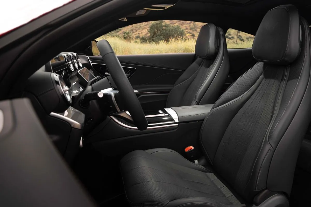 Ανοίγεις τη μεγάλη πόρτα, που όπως σε κάθε μεγάλο coupe που “σέβεται τον εαυτό του” δεν υπάρχει πλαίσιο για το παράθυρο και μπαίνεις σε ένα κόσμο ποιότητας, από αυτούς που έχουν συμβάλλει στο να έχει η Mercedes-Benz το δικό της πιστό κοινό. Πολύ όμορφα και αποτελεσματικά στη στήριξη καθίσματα σε περιμένουν εκεί, με τον ηλεκτρικό βραχίωνα να διευκολύνει τη χρήση της ζώνης ασφαλείας, καθώς τη φέρνει πιο κοντά στον ώμο.