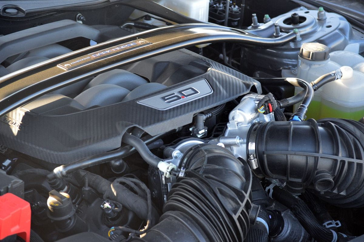 Η απόδοση του κινητήρα συνδυάζεται με ένα σύστημα εξάτμισης που προσφέρει βαθύ, βροντερό ήχο, ενισχύοντας τη δραματική εμπειρία οδήγησης. Αυτός ο συνδυασμός ισχύος και αίσθησης κάνει τη Dark Horse μια από τις πιο συναρπαστικές Mustang που έχουν κατασκευαστεί. Είναι πάρα πολλές οι στιγμές κατά τη λειτουργία του κινητήρα και την οδήγηση της ιδιαίτερης Dark Horse, που το ηχόχρωμα του συνόλου κινητήρα- εξάτμισης, παραπέμπει σε αγώνες NASCAR– όσο κι αν αυτό ακούγεται υπερβολικό σε ορισμένους.