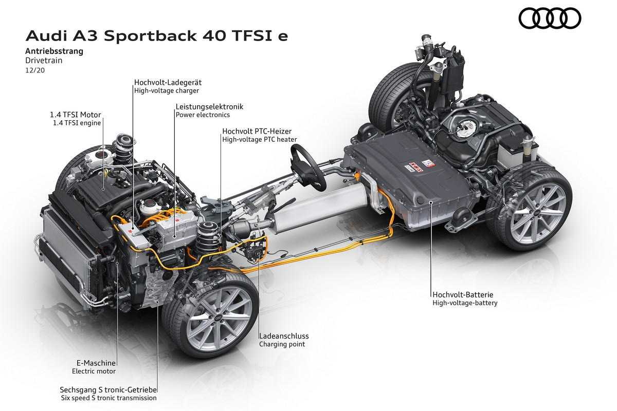 Ένα ακόμα παράδειγμα, αποτελεί το Audi A3, το οποίο στην έκδοση 40 TFSI δεν είναι τίποτα άλλο από μια έκδοση 1.4 ePHEV, που συνδυάζει τον τετρακύλινδρο κινητήρα βενζίνης 1.4 lt – 150 hp, με ένα ηλεκτρικό μοτέρ και μπαταρία που φορτίζεται από εξωτερική πηγή, αλλά και από ανατροφοδότηση.
