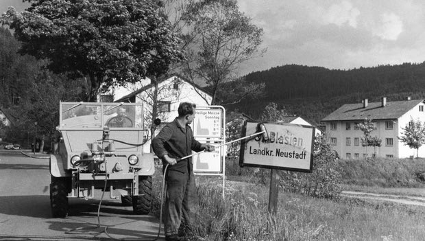 7 – Φροντίδα: οι πινακίδες όχι μόνο πρέπει να εγκατασταθούν αλλά και να συντηρηθούν. Από τη δεκαετία του 1950, το Mercedes-Benz Unimog, για παράδειγμα, έχει χρησιμοποιηθεί με ειδικά εξαρτήματα για τον καθαρισμό οδικών πινακίδων.