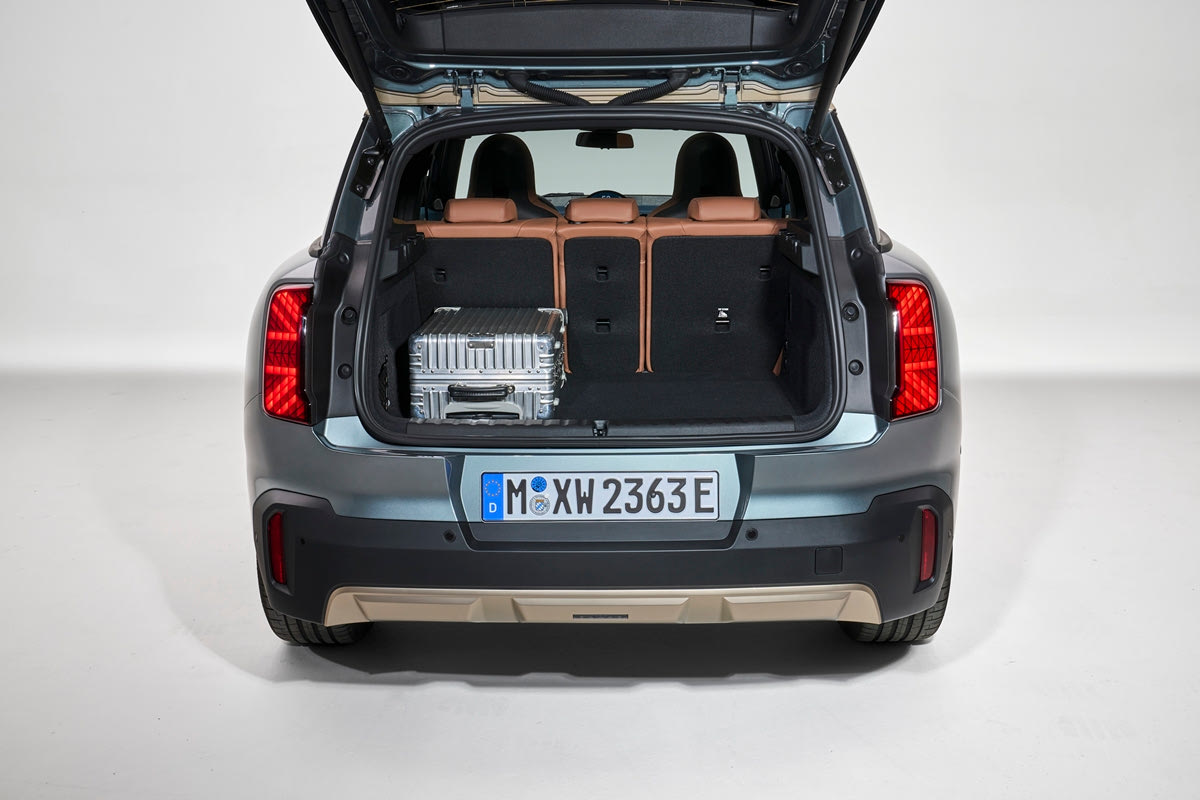 Με το πίσω κάθισμα αναδιπλωμένο, ακόμη και ογκώδη αντικείμενα μπορούν να μεταφερθούν εύκολα στο χώρο αποσκευών, ο οποίος έχει χωρητικότητα από 460 έως 1.450 λίτρα. Ένας πρόσθετος χώρος στο δάπεδο παρέχει βολικό χώρο για τα αξεσουάρ φόρτισης του αμιγώς ηλεκτρικού MINI Countryman. Ο προαιρετικός κοτσαδόρος προσφέρει ένα επιπλέον πλεονέκτημα πρακτικότητας με τον ηλεκτρικό μηχανισμό αναδίπλωσης (ρυμουλκεί έως και 1.200 κιλά).