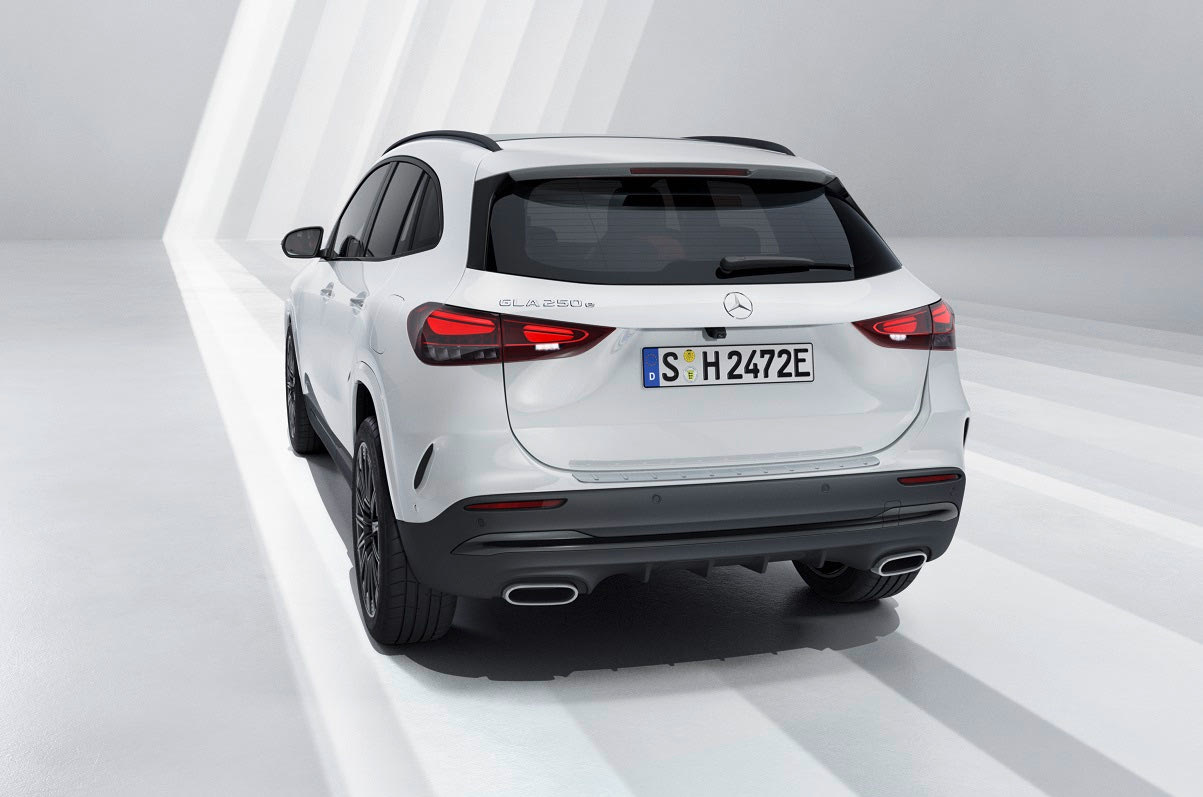 - GLA 250 e Plug-in Hybrid με κινητήρα βενζίνης turbo 1.332 κ.εκ., ηλεκτροκινητήρα 80 kW, συνδυαστική ισχύ 218 ίππων και ροπή 450 Nm, μπαταρία 11,5 kWh, ηλεκτρική αυτονομία 62-70 km, μέση κατανάλωση καυσίμου 1,1-1,4 lt/100 km και ενέργειας 21,1-23,8 kWh/100 km. Η στάνταρ ισχύς φόρτισης της μπαταρίας είναι 3,7 kW και προαιρετικά μπορεί να ανεβεί στα 11 kW ή στα 22 kW.