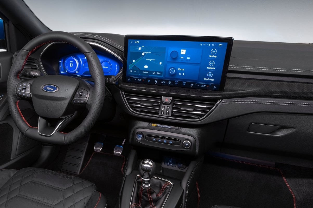 Το νέο Ford Focus απολαμβάνει όλα τα πλεονεκτήματα του συστήματος επικοινωνίας και ψυχαγωγίας SYNC 4 που χρησιμοποιεί έναν προηγμένο αλγόριθμο μηχανικής μάθησης. Το SYNC 4 υποστηρίζεται από μία νέα, κεντρική οθόνη αφής 13,2 ιντσών με διαισθητική διεπαφή, κάτι που σημαίνει ότι οι οδηγοί μπορούν με όχι περισσότερα από ένα ή δύο αγγίγματα να διαχειρίζονται τις εφαρμογές, τις πληροφορίες ή τα συστήματα που επιθυμούν. Η νέα οθόνη αφής περιλαμβάνει επίσης χειριστήρια για λειτουργίες όπως η θέρμανση και ο εξαερισμός που μέχρι πρότινος ενεργοποιούνταν με φυσικά κουμπιά, κάτι που έχει ως αποτέλεσμα τη δημιουργία μιας πιο απέριττης και μινιμαλιστικής κεντρικής κονσόλας.