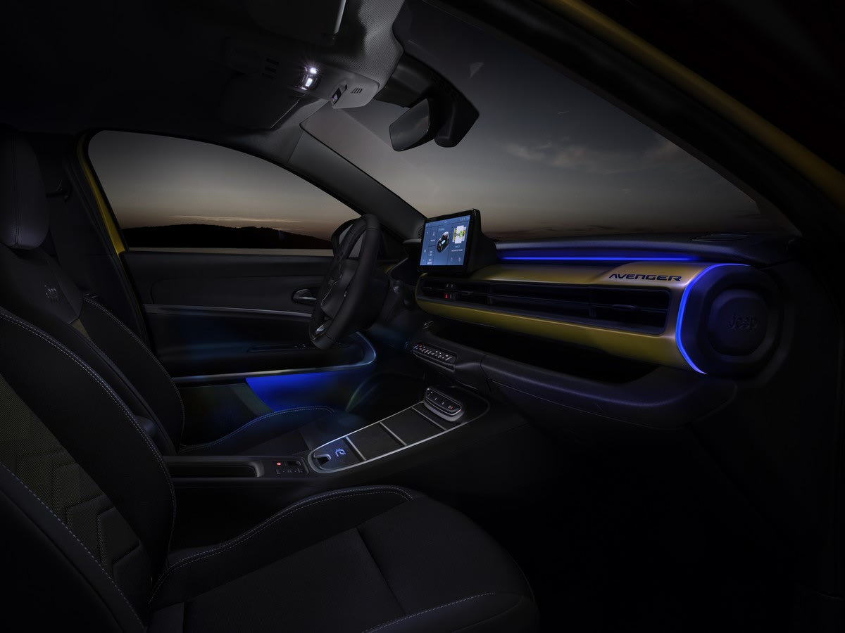 Το εσωτερικό του νέου Avenger χαρακτηρίζεται από τις απλές γραμμές και την οριζόντια διάταξη του ταμπλό που περιλαμβάνει τους αεραγωγούς και τον κρυφό φωτισμό. Οι διακόπτες έχουν περιοριστεί στο ελάχιστο, ενώ ξεχωρίζουν οι δύο παραλληλόγραμμες οθόνες.