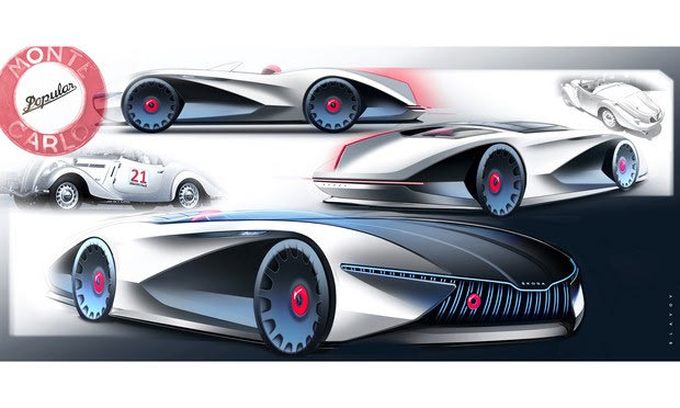 Τα φουτουριστικά σχέδια του Popular Monte Carlo (του σχεδιαστή Ljudmil Slavov) και του coupe 130RS (του Aymeric Chertier) προέρχονται από τα βάθη του αγωνιστικού παρελθόντος της Skoda.