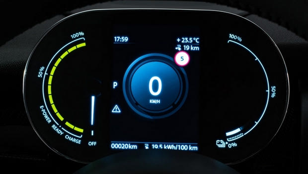Σε κάθε περίπτωση, το πώς λειτουργεί το αυτοκίνητο, ανά πάσα στιγμή, έχεις τη δυνατότητα να το διαπιστώνεις μέσω του ψηφιακού ταμπλό με έγχρωμη οθόνη 5,5 ιντσών, με ταχύμετρο, πληροφορίες σχετικά με το επίπεδο φόρτισης της μπαταρίας, αν είναι συνδεδεμένο σε πρίζα ή σταθμό φόρτισης, ενδείξεις για τον καιρό, την εξωτερική θερμοκρασία, τη διαθέσιμη αυτονομία και την κατάσταση φόρτισης. Ανάλογα με την κατάσταση της φόρτισης, αλλάζει και το χρώμα του πίνακα.