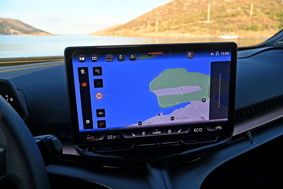 Ο δυναμισμός αυτός συνεχίζεται αυτούσιος και στο εσωτερικό, χάρη στις καμπύλες του ταμπλό -ειδικά στις άκρες του- σε συνδυασμό με τον πυλώνα τύπου ‘Τ’ που ενώνει την κονσόλα με το ταμπλό και δημιουργεί μαζί με την αίσθηση διαχωρισμού της θέσης και του κόκπιτ του οδηγού από το χώρο του συνοδηγού.