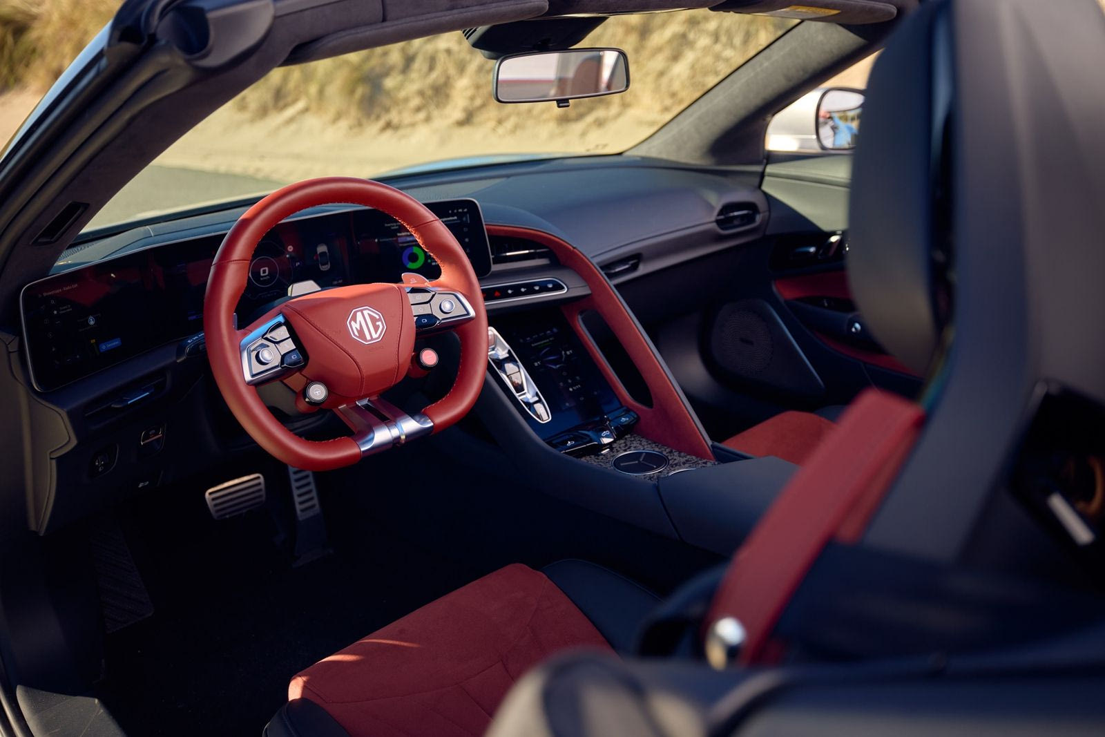 Είσαι έτοιμος να ξεκινήσεις και δεν ακούς τίποτα, πράγμα “παράδοξο” για το ύφος του αυτοκινήτου με το ψαρωτικό look και την υφασμάτινη οροφή. Μπροστά σου, πολλαπλές πληροφορίες και ένα cockpit που μοιάζει περισσότερο με concept car παρά με αυτοκίνητο παραγωγής. Κοντολογίς, τίποτα δεν μπορεί να σε προετοιμάσει για την εμπειρία της οδήγησης και του ταξιδιού με το MG Cyberster. Και αυτό είναι που το κάνει εν τέλει τόσο ξεχωριστό.