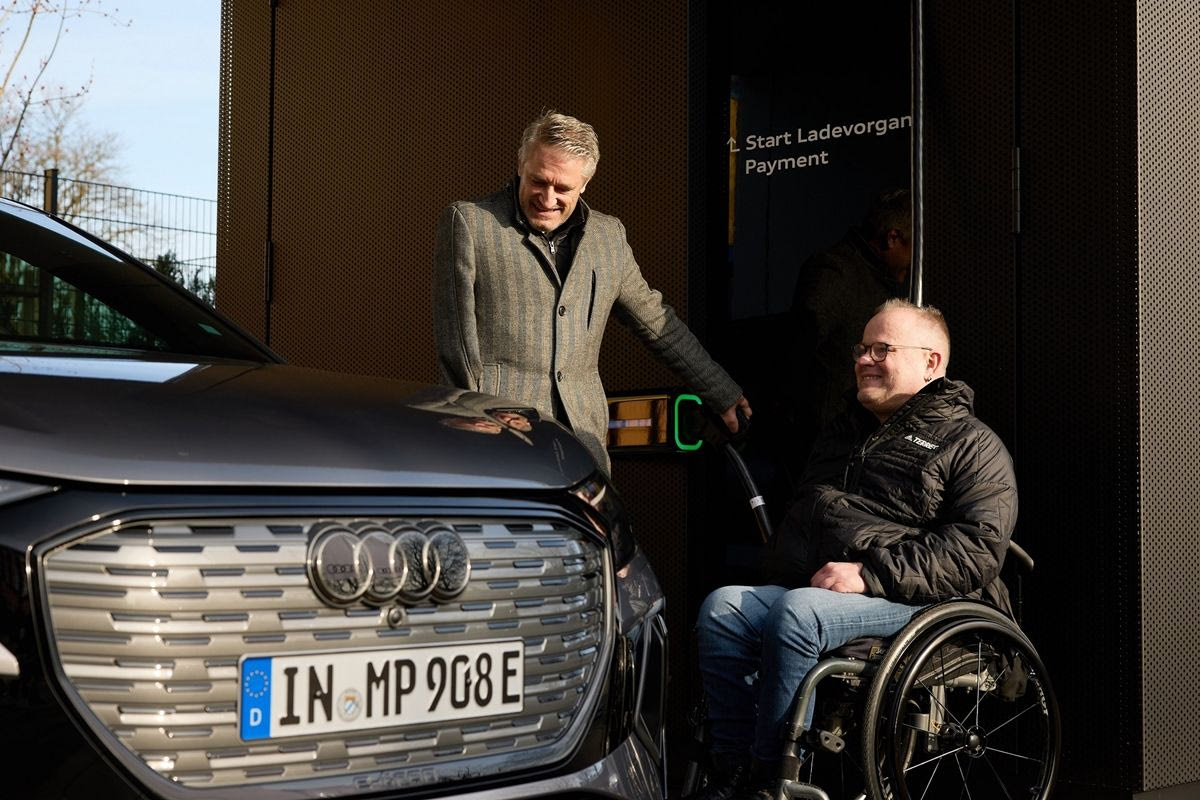 Επιπλέον, όλοι οι κόμβοι φόρτισης της Audi είναι σχεδιασμένοι έτσι ώστε να μην δημιουργούν εμπόδια: ένας περιστρεφόμενος βραχίονας, για τον οποίο έχει κατοχυρωθεί δίπλωμα ευρεσιτεχνίας, οι οθόνες ρυθμιζόμενου ύψους και ο άφθονος χώρος για ελιγμούς -για παράδειγμα, ενός αναπηρικού αμαξιδίου- καθιστούν τη φόρτιση εύκολη για όλους, συμπεριλαμβανομένων των ατόμων με ειδικές ανάγκες.