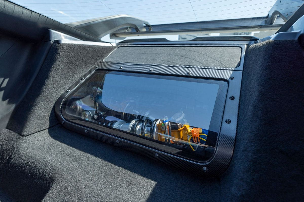 Τα προηγμένα πίσω αμορτισέρ Adaptive Spool Valve της νέας Mustang GTD που υπογράφει η Multimatic, θυμίζουν κοσμήματα σε βιτρίνα καθώς προβάλλονται μέσα από ένα παράθυρο στην καμπίνα ώστε να είναι άμεσα ορατά ακόμα και σε αυτούς που βρίσκονται έξω από το αυτοκίνητο