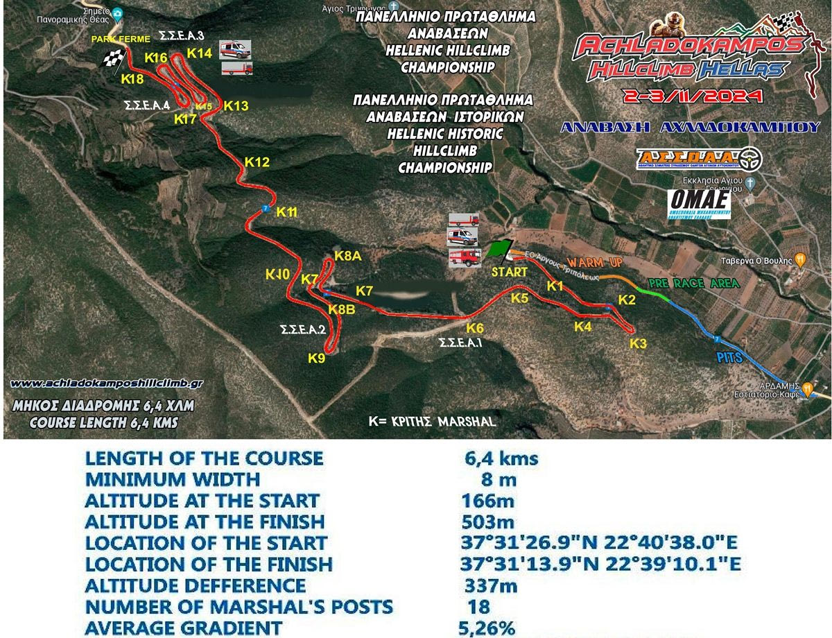 Η διαδρομή βρίσκεται σε εξαιρετική κατάσταση με τερέν εφάμιλλο των Αγώνων του Πανευρωπαϊκού Πρωταθλήματος. Υπενθυμίζεται ότι ο αγώνας του σωματείου μας (ΑΣΣΟΑΑ) είναι υποψήφιος (Candidate) προς ένταξη στο διεθνές ημερολόγιο της FIA ως ένα ακόμα αθλητικό γεγονός του Mηχανοκίνητου Aθλητισμού της χώρας μας.