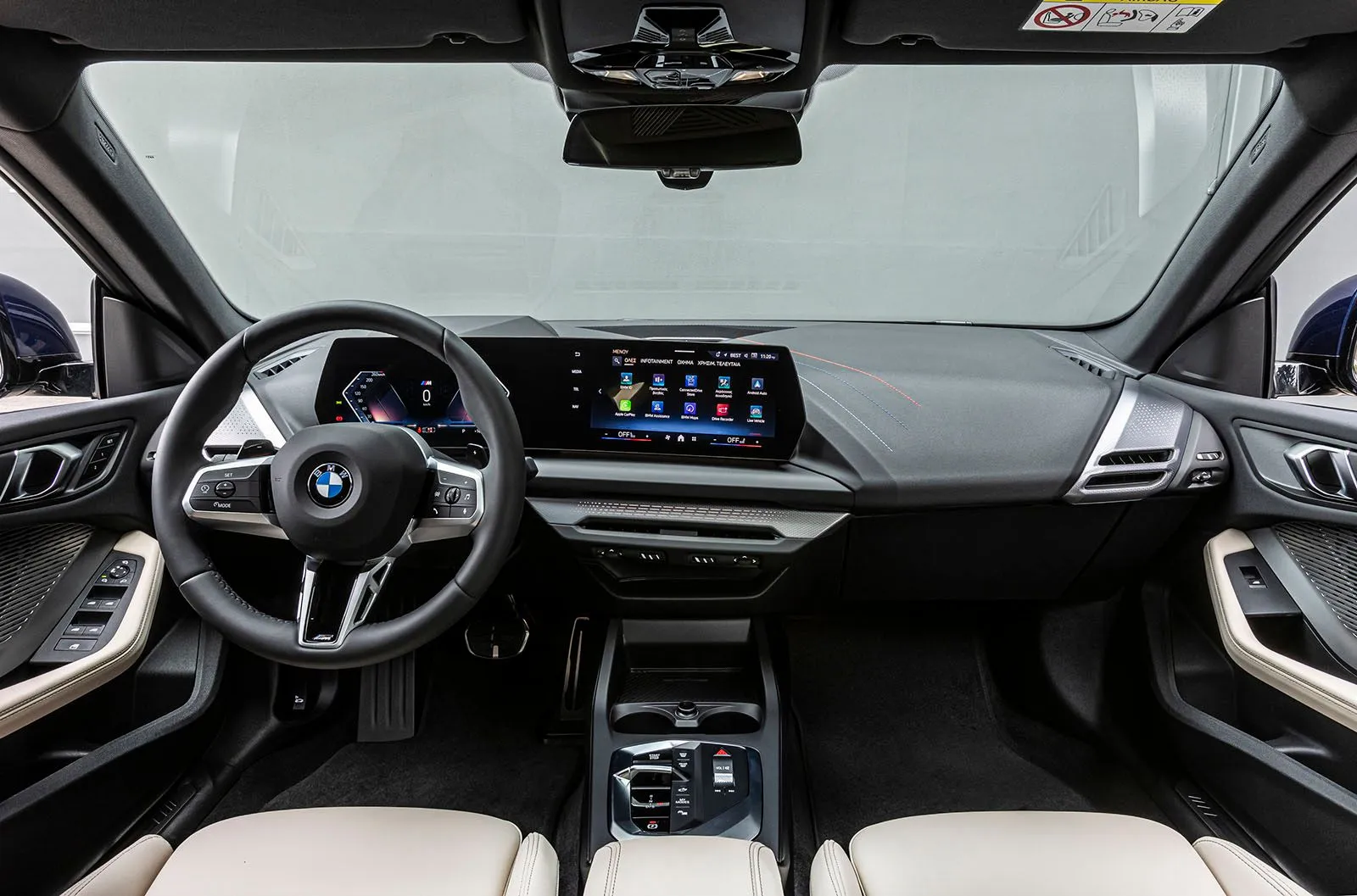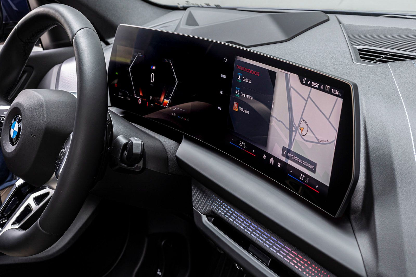 Οι πληροφορίες των πολυμέσων, της πλοήγησης και της συνδεσιμότητας απεικονίζονται στη δεξιά από τις δύο οθόνες της μεγάλης μακρόστενης επιφάνειας του BMW Curved Display – που έχει στις αριστερή του πλευρά τον πίνακα οργάνων. Ο επιλογέας ταχυτήτων έχει επίσης ανασχεδιαστεί, όπως και τα καθίσματα (προαιρετικά διατίθενται σπορ καθίσματα σε Econeer, καθώς και σπορ καθίσματα M).