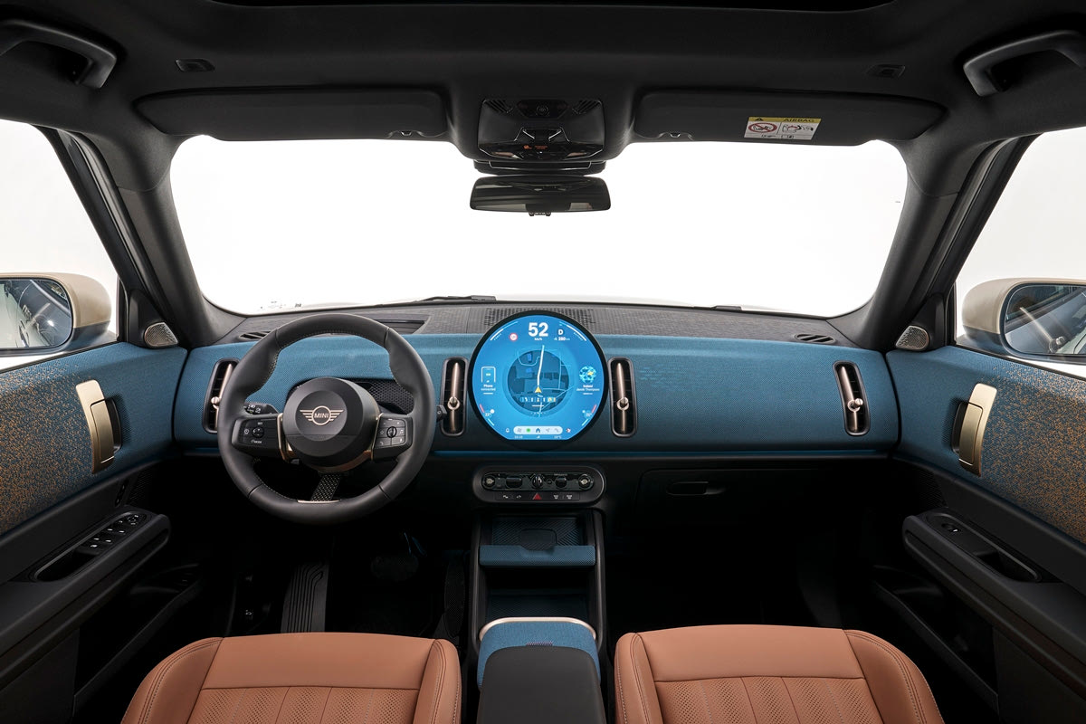 Σε συνδυασμό με την κεντρική οθόνη OLED διαμέτρου 240 χιλιοστών και πολλές νέες, ψηφιακές λειτουργίες στο MINI Connected Package, προάγει αισθητά το επίπεδο της διασκεδαστικής οδήγησης MINI στο νέο MINI Countryman. Αυτό γίνεται επίσης εμφανές στο νέο τιμόνι πολλαπλών λειτουργιών με σχεδιασμό δύο ακτίνων και προαιρετικό υφασμάτινο μπράτσο αντί της κλασικής κάτω ακτίνας.