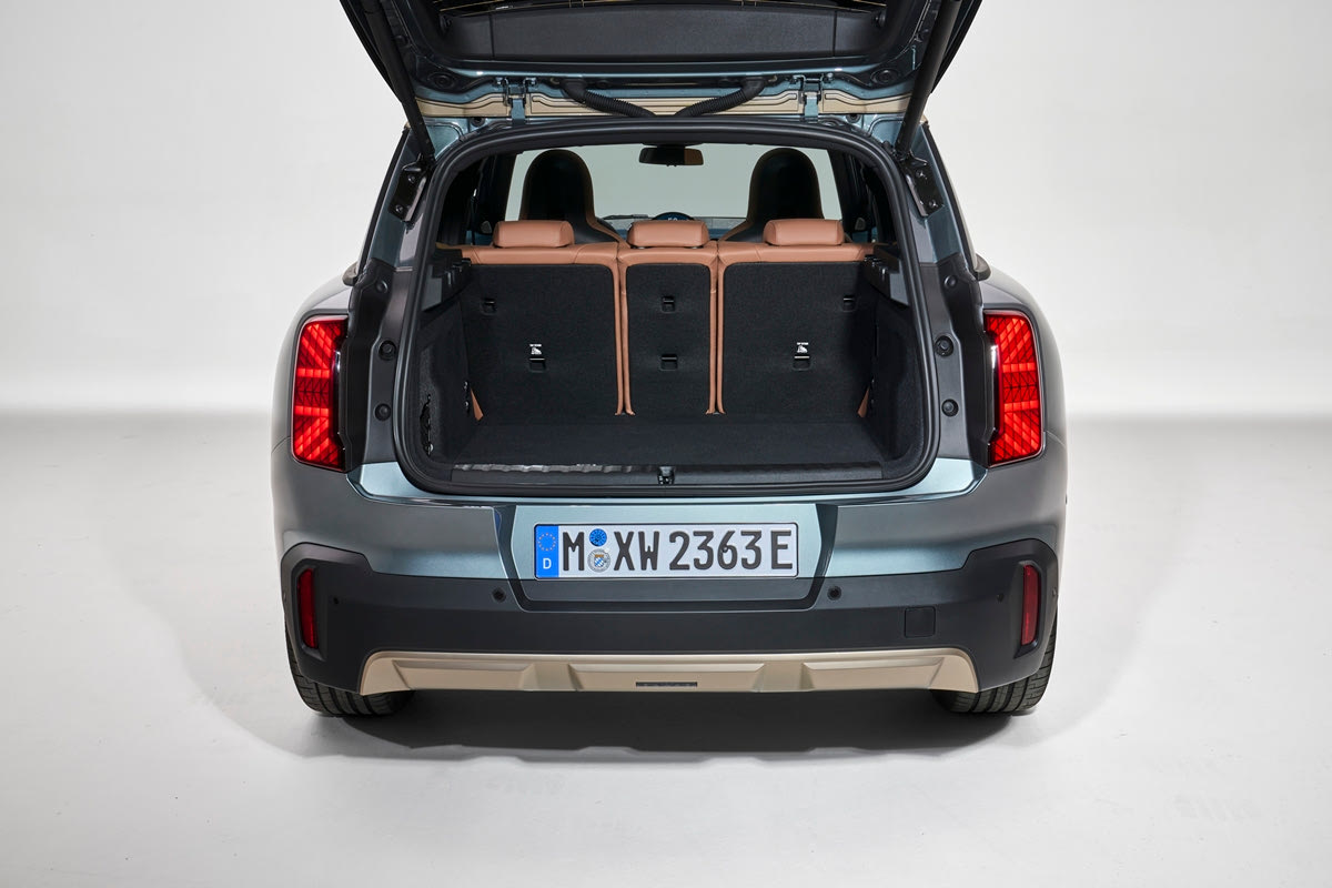 Η κομψή σχεδίαση της κολόνας C διαφέρει ανάλογα με τον εξοπλισμό του οχήματος και βασίζεται σε ένα από τα τέσσερα χρώματα της οροφής. Το πίσω μέρος του οχήματος πλαισιώνεται από τα κάθετα διατεταγμένα νέα πίσω φώτα. Κάτω από τα γράμματα της ονομασίας του μοντέλου, το αμάξωμα στενεύει σε όλο το πλάτος και, σε συνδυασμό με την εντυπωσιακή, μαύρη λωρίδα που αγκαλιάζει το όχημα, τονίζει την αναβαθμισμένη παρουσία του νέου MINI Countryman.