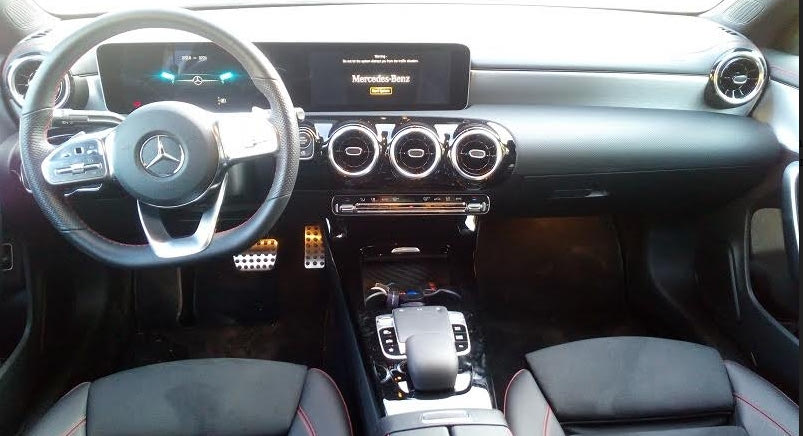 Σχεδιαστικά, δεν χρειάζεται να πεις πολλά διότι τα βλέπεις όλα στο εξωτερικό, ωστόσο στην καμπίνα αξίζει να πούμε ότι το κόκπιτ είναι δανεισμένο από την A-Class κι αυτό είναι γνώριμο στοιχείο της γερμανικής μάρκας. Ξεχωρίζει ο μεγάλος πίνακας οργάνων με ενσωματωμένη την οθόνης αφής, οι αεραγωγοί – τουρμπίνες και το σύστημα πολυμέσων MBUX που κάνει απίστευτα πράγματα με φωνητικές εντολές. Υψηλού επιπέδου τα υλικά τα καμπίνας, μαλακά πλαστικά, δέρμα και αλκαντάρα, αλουμίνιο στα πεντάλ, το τιμόνι και σε άλλες λεπτομέρειες. Εντυπωσιάζει και ο επίπεδος διακόπτης αφής, που αλλάζεις πανεύκολα τις λειτουργίες στο σύστημα πολυμέσων.