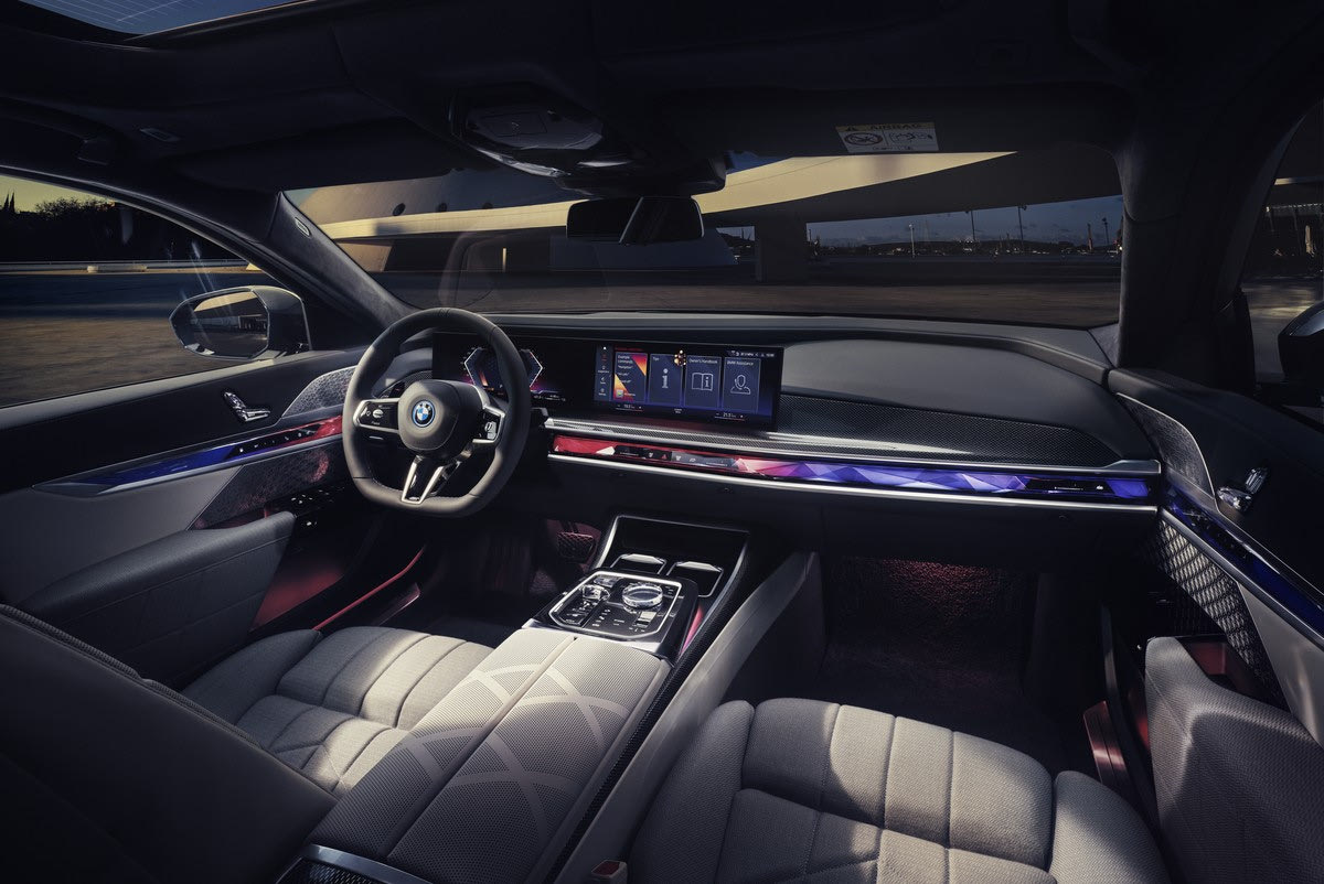 Η γερμανική λιμουζίνα εφοδιάζεται με την τελευταία γενιά του BMW iDrive και λειτουργικό σύστημα BMW Operating System 8. Ο διαισθητικός διάλογος μεταξύ του οδηγού και του οχήματος φτάνει σε νέο επίπεδο με την πλήρως ψηφιακή κυρτή οθόνη BMW Curved Display, την καινοτόμα BMW Interaction Bar σε όλο το πλάτος του ταμπλό, τις βελτιωμένες δυνατότητες του BMW Intelligent Personal Assistant, τα πρόσθετα My Modes, την τελευταία έκδοση του BMW Head-Up Display και τη λειτουργία Augmented View που είναι διαθέσιμη για πρώτη φορά στην οθόνη πληροφοριών πίσω από το τιμόνι.