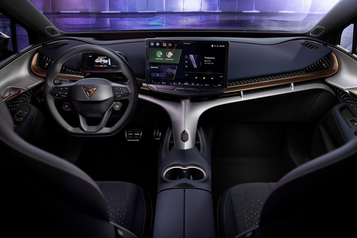 Στο εσωτερικό από την άλλη κυριαρχούν ο πλήρως ψηφιακός πίνακας οργάνων, το σύστημα infotainment 15″ – το μεγαλύτερο μέχρι στιγμής σε μοντέλο της CUPRA – με δυνατότητες εξατομίκευσης και το ηχοσύστημα 12 ηχείων που αναπτύχθηκε σε συνεργασία με την premium εταιρεία ήχου Sennheiser.