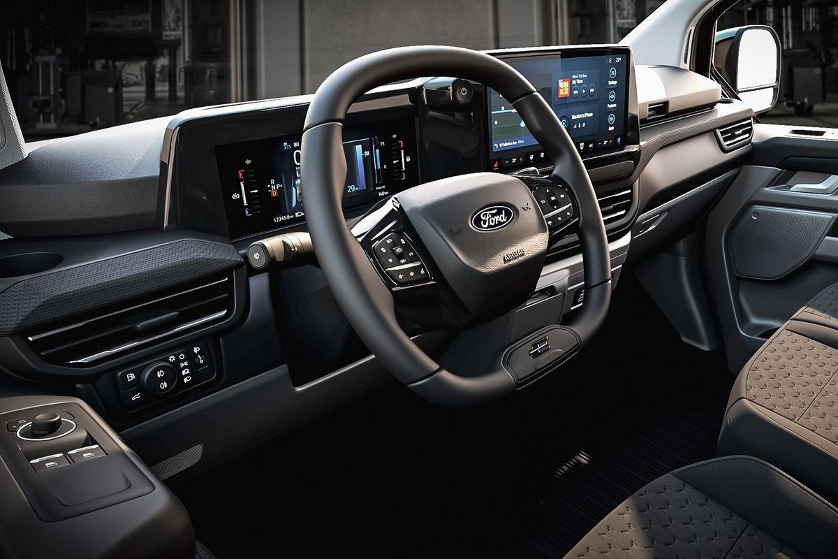 Η εξοικονόμηση αυτή αποτελεί απόρροια του διαστήματος σέρβις 2 ετών χωρίς χιλιομετρικό όριο, σε συνδυασμό με την εγγύηση 8 ετών/160.000 km που καλύπτει όλα τα εξαρτήματα υψηλής τάσης. Όλα τα E-Transit Custom είναι εξοπλισμένα με μια οθόνη αφής 13 ιντσών με κλίση προς τον οδηγό και οριζόντια διάταξη. Η οθόνη υποστηρίζει το προηγμένο σύστημα επικοινωνίας και ψυχαγωγίας SYNC 4 της Ford που λειτουργεί μέσω 5G modem.
