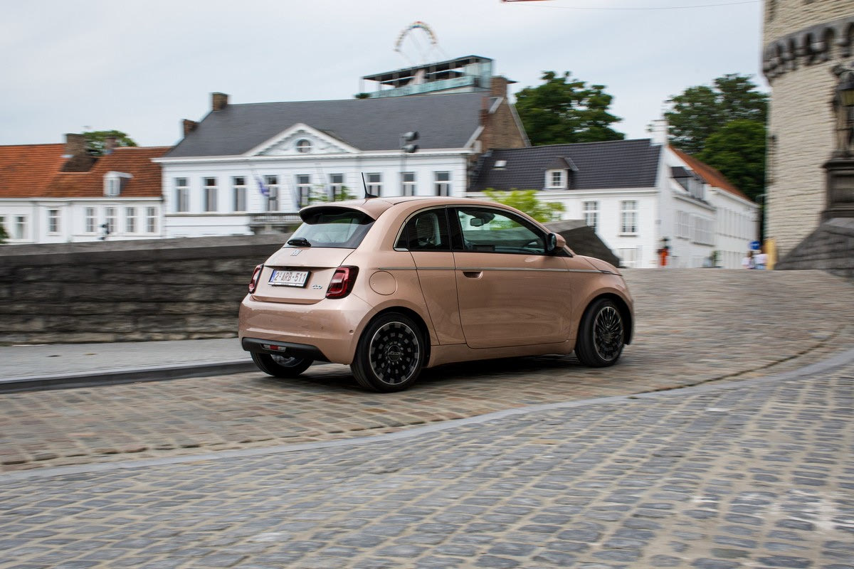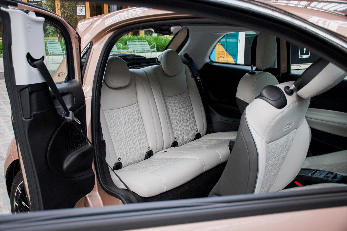 Έπειτα, η απουσία μεσαίας κολώνας στην πλευρά του συνοδηγού δεν επηρεάζει την ασφάλεια. Προφανώς και αποτέλεσε ιδιαίτερη πρόκληση για τους μηχανικούς, οι οποίοι έπρεπε να βρουν τρόπους για να διατηρήσουν την ακαμψία του συνόλου, αλλά και το συνολικό επίπεδο παθητικής ασφάλειας. Η ενισχυμένη δομή που ήδη διαθέτει το νέο πλαίσιο του αμιγώς ηλεκτρικού 500 αποτέλεσε σύμμαχο τους, αφού με πολύ μικρές ενισχύσεις κατέστη δυνατή η επίτευξη του στόχου. Το εξαιρετικά στιβαρό τμήμα που φιλοξενεί την μπαταρία και το χαμηλότερο κέντρο βάρους σε σχέση με τα συμβατικά οχήματα επίσης συνέβαλαν στο να απαιτηθούν ελάχιστες παρεμβάσεις, σε σχέση με τη σχεδίαση της έκδοσης hatchback.