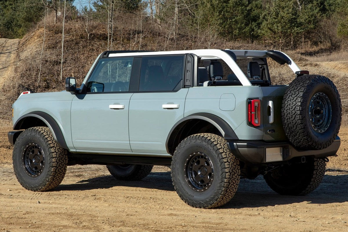 Τα παράθυρα χωρίς πλαίσιο μειώνουν το συνολικό βάρος των θυρών, με αποτέλεσμα να είναι αρκετά ελαφριές για να αφαιρούνται εύκολα από τους ιδιοκτήτες ανεξαρτήτως σωματότυπου. Το Bronco προσφέρει μάλιστα ειδικές τσάντες αποθήκευσης για την ασφαλή μεταφορά των θυρών μέσα στο αυτοκίνητο, έτσι ώστε να είναι έτοιμες για επανατοποθέτηση μέσα σε λίγα λεπτά. Η ομάδα σχεδίασης τοποθέτησε επίσης τους εξωτερικούς καθρέπτες μπροστά από το παρμπρίζ, ώστε η ορατότητα να διατηρείται ακόμα και όταν οι πόρτες έχουν αφαιρεθεί.