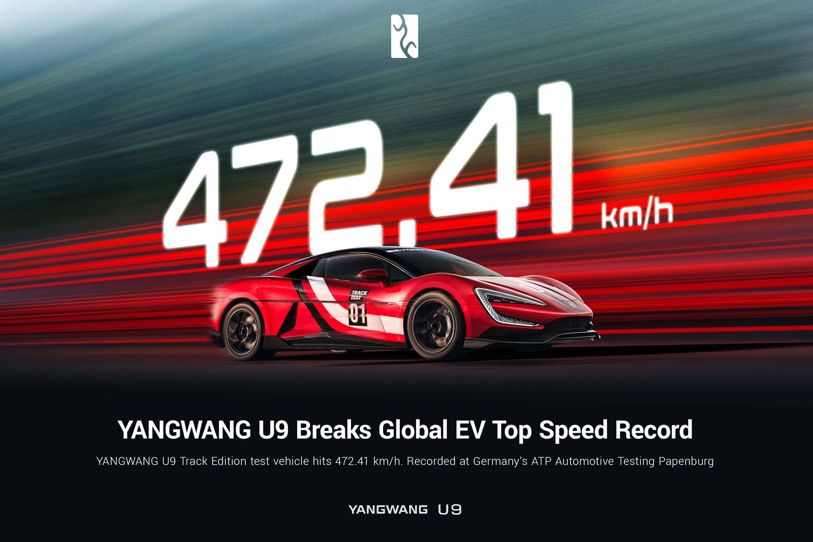 Η Yangwang, η κορυφαία premium μάρκα της BYD, κατέγραψε νέο παγκόσμιο ρεκόρ τελικής ταχύτητας για ηλεκτρικά οχήματα φτάνοντας τα 472,41 χλμ./ώρα στην πίστα δοκιμών ATP (Automotive Testing Papenburg) στη Γερμανία. Το επίτευγμα σημειώθηκε με το πιο πρόσφατο hypercar U9 Track Edition της Yangwang στις 8 Αυγούστου 2025, με αποτέλεσμα το να αναδειχθεί το ταχύτερο EV στον κόσμο.