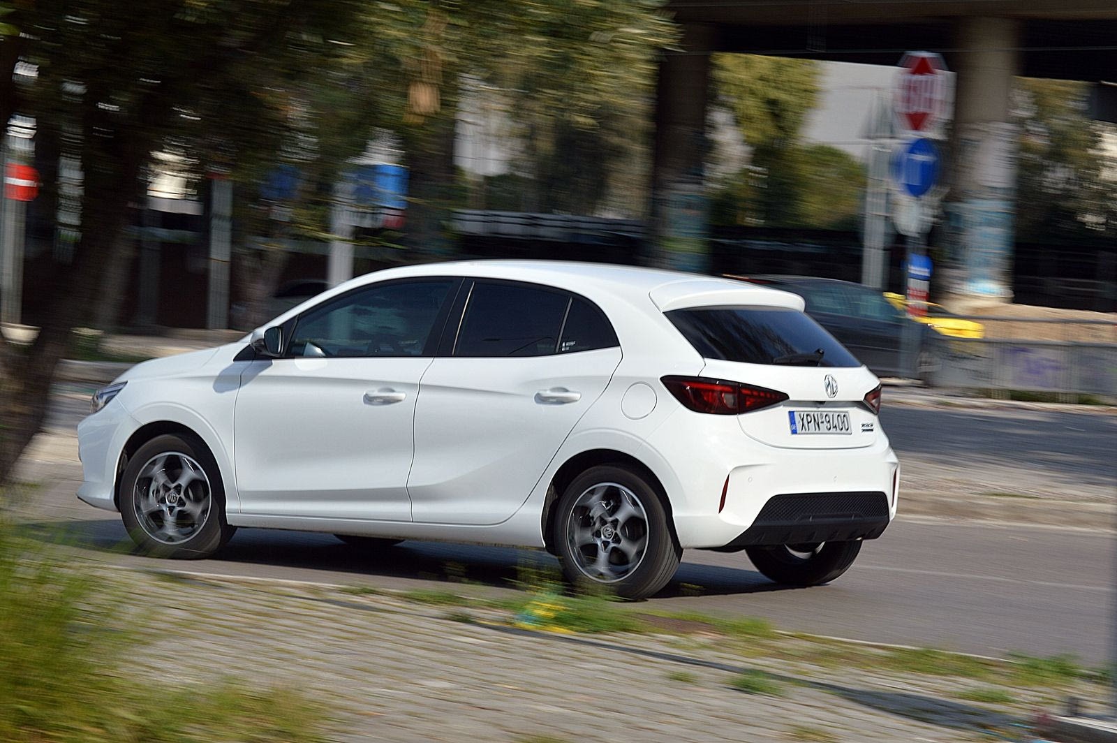 Ο βενζινοκινητήρας αναλαμβάνει στη συνέχεια και μάλιστα χωρίς να υπάρχει κάποιο αισθητό “σκαλοπάτι” κατά την εμπλοκή του. Στην πράξη, η αίσθηση θυμίζει περισσότερο ηλεκτρικό αυτοκίνητο παρά συμβατικό υβριδικό. Η απόκριση στο γκάζι είναι άμεση και η επιτάχυνση στις χαμηλές ταχύτητες είναι εντυπωσιακά ζωηρή. Σε αστικές συνθήκες, το MG3 δείχνει να κινείται με χαρακτηριστική άνεση, σαν να είναι φτιαγμένο για αυτό το περιβάλλον.